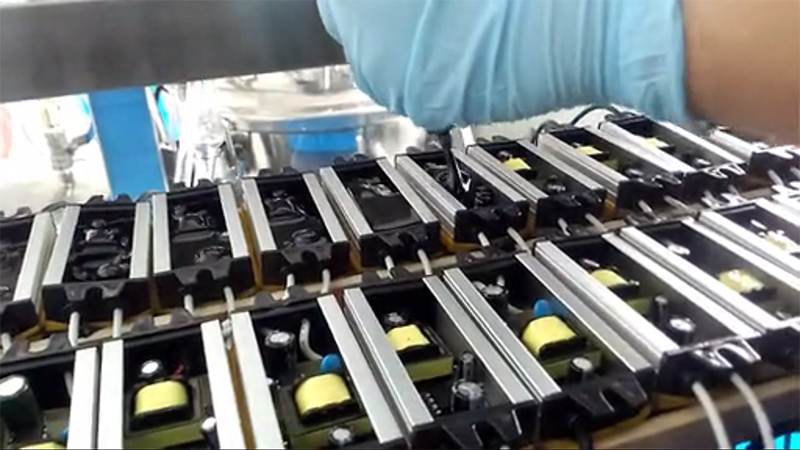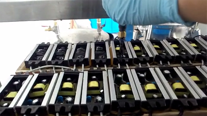 電子灌封膠有雙組份,也有單組份,本案例客戶深圳電子科技有限公司使用我司雙組份電子灌封膠進(jìn)行電源灌模密封。采用機(jī)器進(jìn)行真空環(huán)境下操作配比,將配比后的電子灌封膠經(jīng)過管道輸出就可以用于電源灌封使用。下面是客戶生產(chǎn)視頻拍攝由于手機(jī)拍攝像素問題導(dǎo)致不清晰,請(qǐng)諒解。